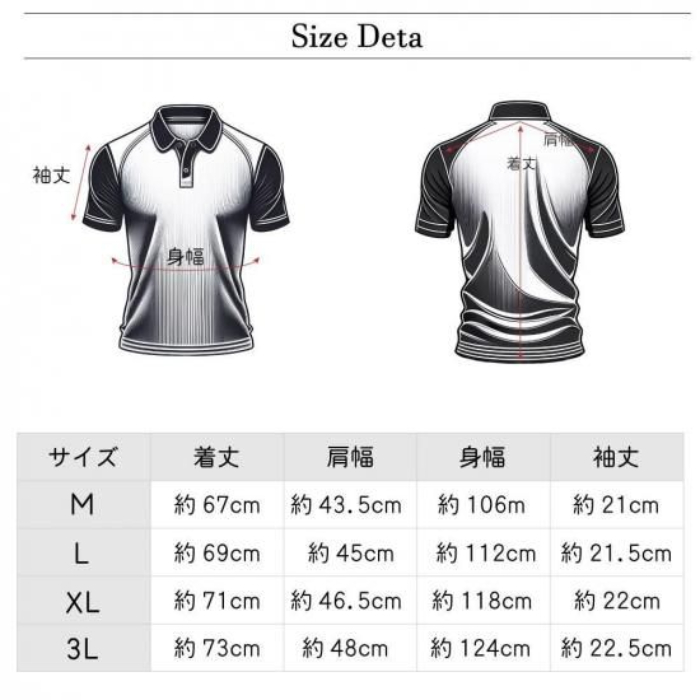 | サイズ | M(着丈 約67cm, 肩幅 約43.5cm, 胸囲 約106m, 袖丈 約21cm) |