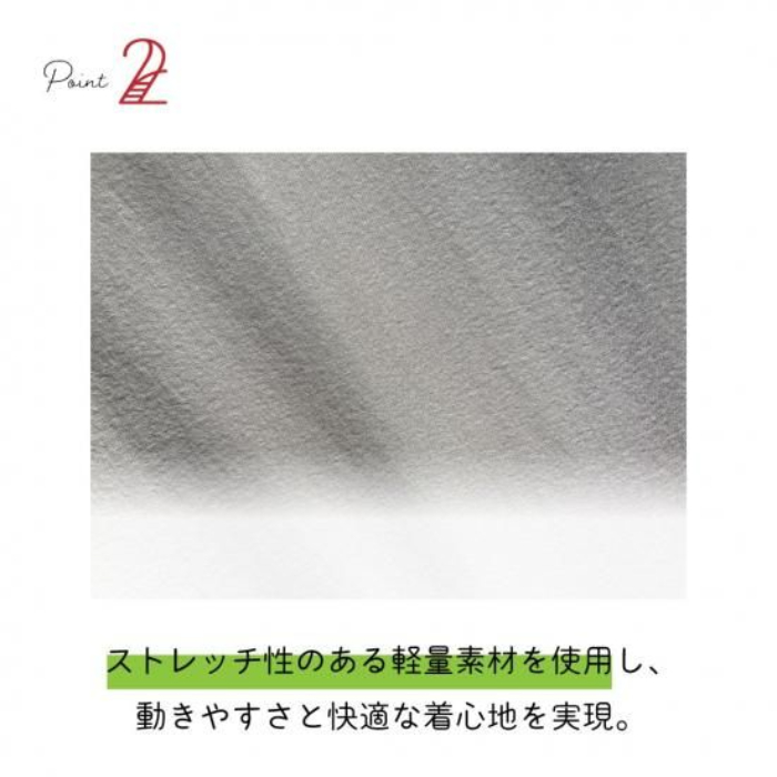 ストレッチ性のある軽量素材を使用し、動きやすさと快適な着心地を実現。