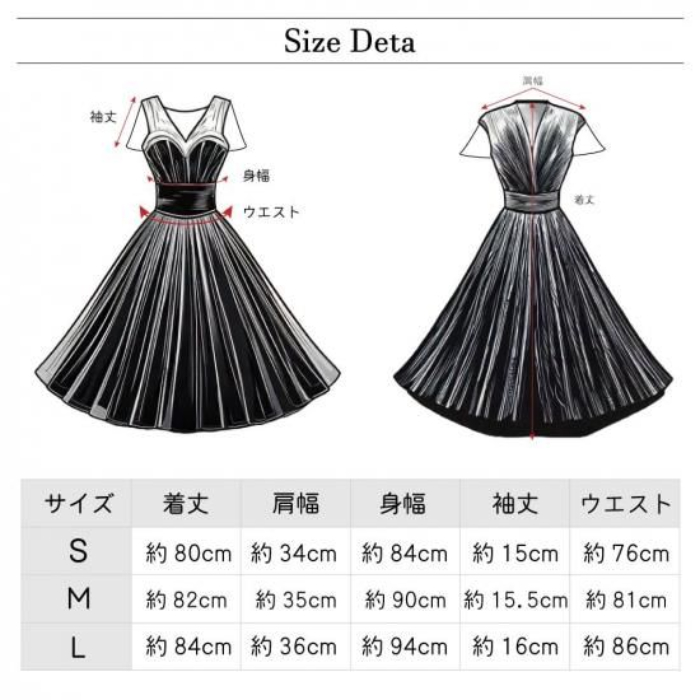 | サイズ | S(着丈 約80cm, 身幅 約84cm, 肩幅 約34cm, 袖丈 約15cm, ウエスト 76cm) |