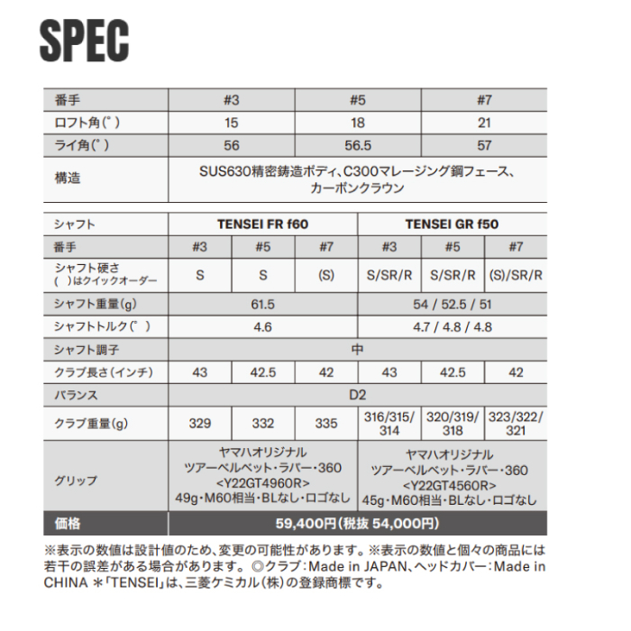 YAMAHA DD フェアウェイウッド FW リミックス ぶっ飛び 高弾道 高初速 TENSEI 在庫限り 最新 2026